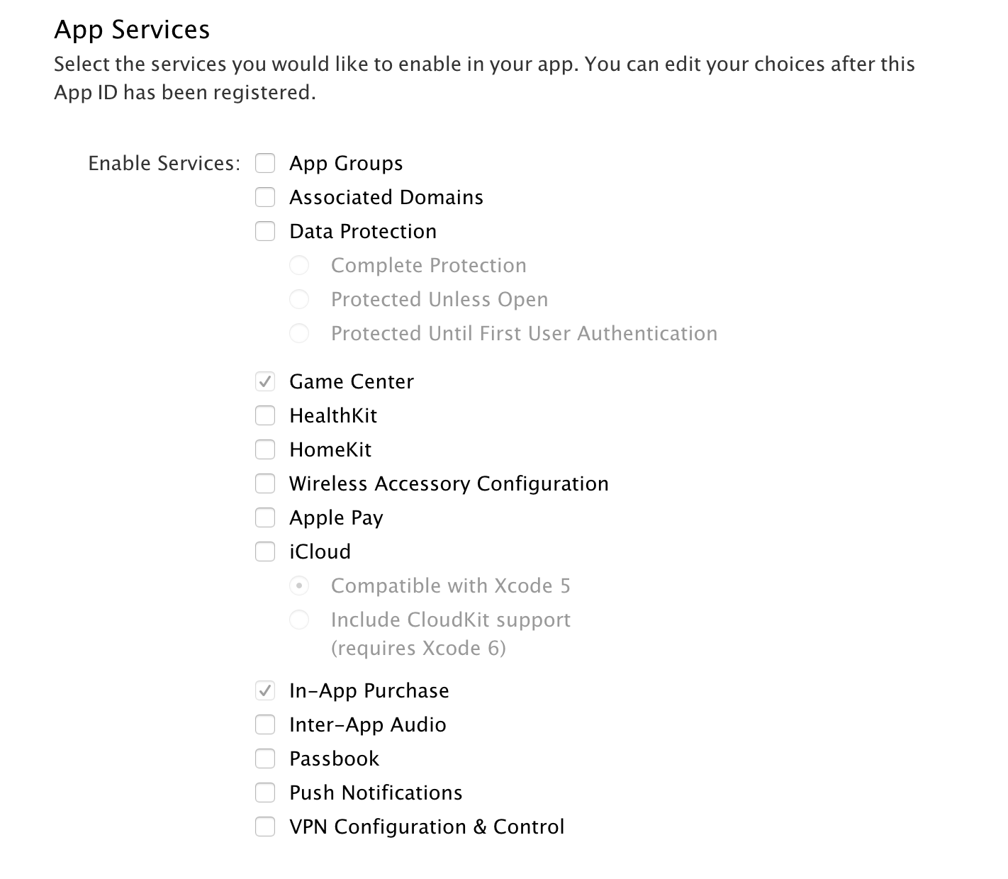 app需求的服务选择,理论来说用到了什么就勾选什么,当然,很多时候我们并不清楚到最后我们会使用到哪些服务,那么就都选上吧。