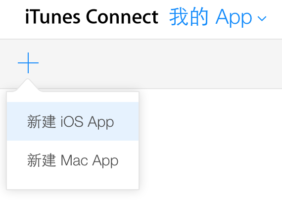 好了,我们的App有身份了,现在可以直接去iTunes Connect添加待审核了。登录进去后进入我的 App然后左上角加号添加新的iOS应用。