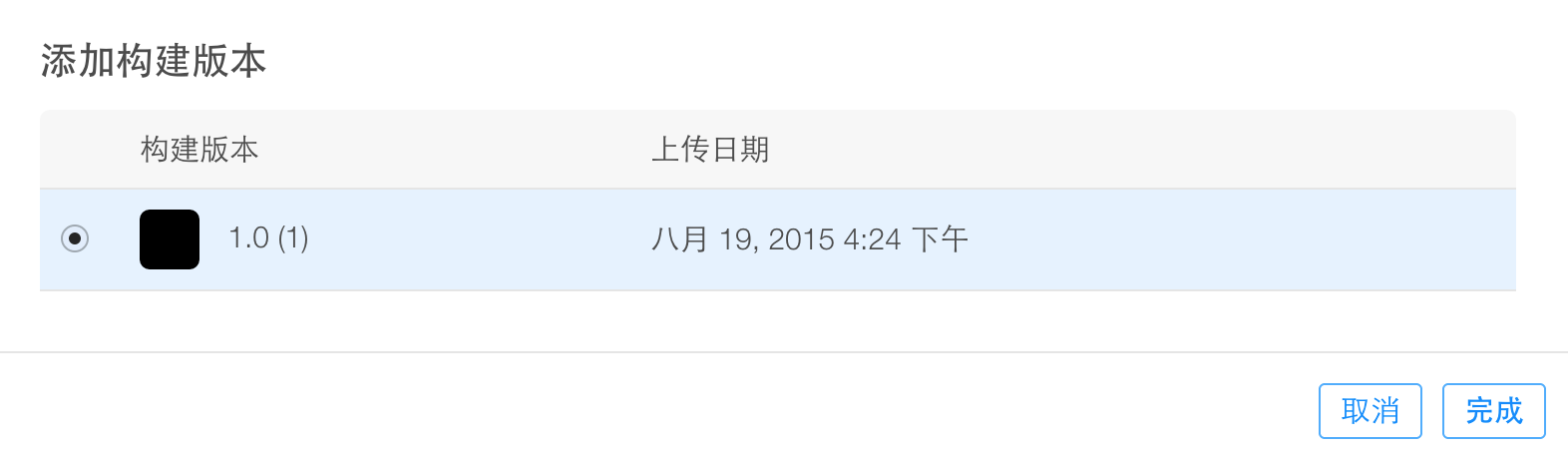 现在我们重新回到iTunes Connect的我的 App里面,打开刚刚建立并设置好的那个App。进去之后找到构建版本模块,看,是不是旁边多了一个加号?点击那个加号,选择刚刚上传的那个ipa。